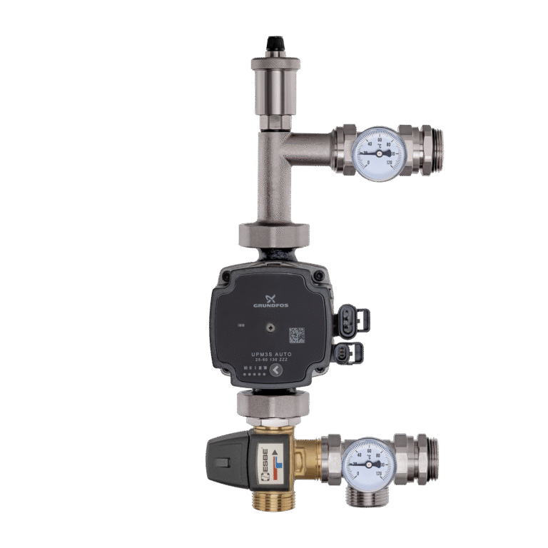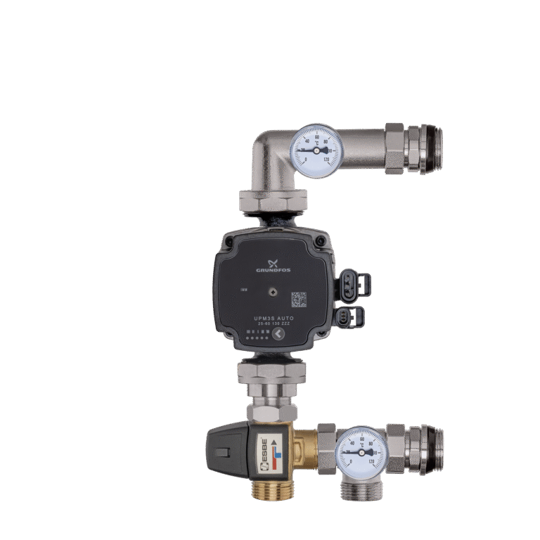 PONIKLOVANÁ SMĚŠOVACÍ SADA ČERPADLO GRUNDFOS + ESBE TROJCESTNÝ VENTIL 20-50 °C, KVS 3.4 S AUTOMATICKÝM ODVZDUŠŇOVÁNÍM TYP1